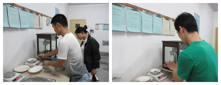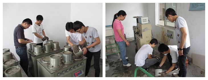 經公司總經理簡潔的動員后,檢測室全體人員分成十組分頭練兵。項目包括混凝土砂漿配合比、砼抗滲、磚瓦、水泥、土工、開關插座、防水材料、粉煤灰、節能材料、環境檢測。分別由檢測室主任孟巍巍、質量負責人朱文英、主任助理周惠、周全以及優秀員工陳江濤、鄒偉、樓走洲擔任組長,每個小組都制定了詳盡的練兵計劃。過程中組員們學習規范、相互觀摩、比對實驗、不斷改進,高潮迭起。許多年輕檢測員秉執青出于藍而勝于藍的學習精神,全身心的投入到檢測大練兵中,一旦碰到問題、難點會及時向組長請教并將所學到的難點重點一一記錄下來,便于以后鞏固和提高。在8月30日的大練兵階段小結會議上,組長們紛紛表示組員們勤奮、認真,善于發現問題并及時解決,檢測能力得到了提升,達到了大練兵的目的。