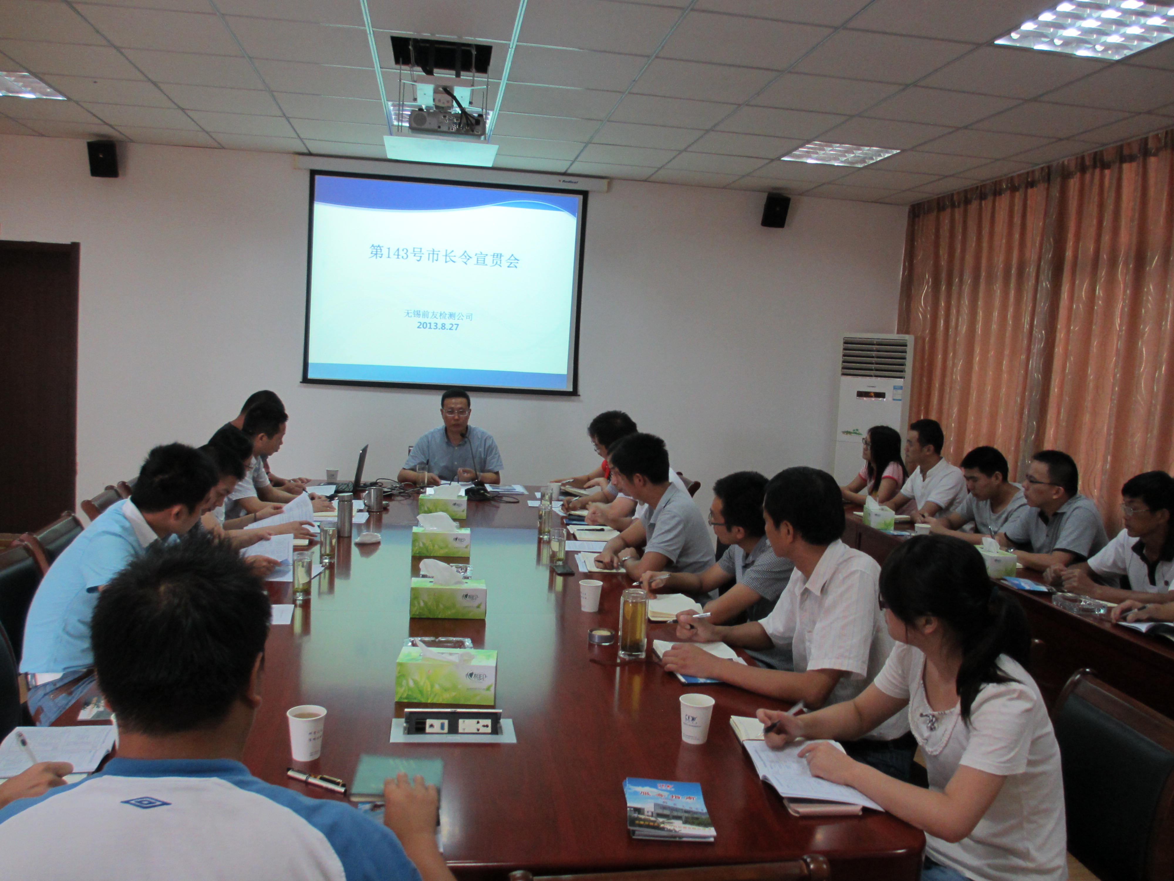 為認真學習貫徹《無錫市建設工程質量監督管理辦法》,公司于8月27日下午召開了143號市長令宣貫會,公司全體員工參加了會議。 會議由公司總經理鄒明主持。會上,鄒總給大家作了第143號市長令《無錫市建設工程質量監督管理辦法》的學習輔導,結合建筑管理法律法規和工程實例對員工進行了建筑相關法律知識的普及教育。接著,綜合辦公室主任陳衛介紹了公司2013版服務指南的變更與新增內容;質量負責人朱文英通報了近期檢測監督檢查情況;檢測室主任孟巍巍代表檢測人員作了“外場檢測服務承諾”;技術負責人王大遠作了檢測人員崗位調整說明。 會議最后,鄒總對近期工作作了全面部署。要求公司全體員工會后繼續深化學習第143號市長令,牢記工程質量檢測單位和檢測人員的工程質量責任,進一步規范檢測行為,做到崗位守責,為保證建設工程質量作出新貢獻。