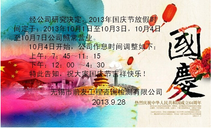 | 關(guān)于國慶節(jié)放假及節(jié)后營業(yè)時間調(diào)整的公告 | ||