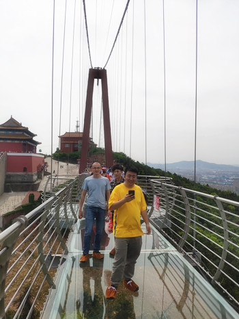 青,是綠色,是生命的顏色;春,是季節,是成長的季節;青春就是出生在成長季節的那片生命的綠色,是陽光下那片燦爛的笑容。它是美好的,也是短暫的,即使它像一顆流星,我們也要努力讓它成為一次輝煌的閃現,不懼艱難困險,敢于拼搏。 在五四運動100周年這個具有特殊意義的時刻,前友青年員工開啟了一場“青春力量,挑戰自我”的華西玻璃棧道主題活動。 華西玻璃棧道坐落于華西世界探險公園內,高山之上,玻璃棧道懸起,群山環抱,景象萬千。一座從“天安門”到“山海關”的玻璃棧道,總長518米,是目前世界上最長的玻璃橋,人踩上去玻璃不僅會出現碎裂效果,走到哪兒,裂到哪兒,就算你閉眼,還能聽到“咔嚓咔嚓”的碎裂聲,驚悚程度Max!刺激程度Max!恐怖程度Max!走在玻璃棧道上來一次漫步云端的感受,更有3D特效讓你感受心跳加速。 挑戰自我是青年人的特質,青春孕育著無窮無盡的能量等著我們去開采,去挖掘,去釋放。正如習近平總書記在紀念五四運動100周年大會上說的那樣:“積極擁抱新時代、奮進新時代,讓青春在為祖國、為人民、為民族、為人類的奉獻中煥發出更加絢麗的光彩”!