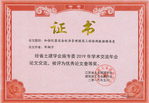 5月15日至5月17日,江蘇省土木建筑學會建筑施工專業委員會第九屆六次會議暨2019年學術交流會在鎮江句容市召開。 會議總結交流了各市學會工作經驗,研究布置了2019年省學會施專委工作。會上組織了學術交流,論文主題為綠色環保及節能施工新技術、建筑裝飾裝修施工學技術、現代施工管理及施工質量安全監控等。 今年的論文評審,更注重質量,不求數量。全省各市推薦500篇論文參會交流,經評審,有300篇論文評選為省優秀施工學術論文。無錫市前友工程咨詢檢測有限公司“加強儀器設備校準管理提高工程檢測數據精準度”論文參會交流并獲獎。