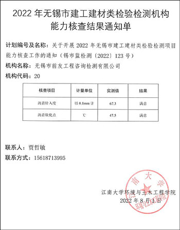 為加強對我市資質認定檢驗檢測機構的事中事后監管,提升檢驗檢測機構技術能力水平,根據《檢驗檢測機構監督管理辦法》第十八條并結合我市實際,無錫市市場監督管理局于7月份在全市資質認定檢驗檢測機構中開展瀝青針入度、軟化點、水泥比表面積、燒失量4個參數的檢測能力核查工作。 本次能力核查工作委托江南大學為技術支持單位,負責能力核查作業指導書制定、樣品準備、結果匯總、統計分析等工作。 瀝青針入度、軟化點參數測定結果采用Z比分數進行判定。|Z|≤2,判定為滿意值,說明機構目前的檢測能力狀況良好;2<|Z|<3,判定為可疑值,說明機構目前的檢測能力狀況存在一定問題;|Z|≥3,判定為不滿意值或離群值,說明機構目前的檢測能力狀況不理想,存在較大問題。水泥比表面積、燒失量按照與標準物質證書指定值進行比對,在證書規定的允許誤差范圍內為滿意結果。本次能力核查中,無錫市前友工程咨詢檢測有限公司獲得滿意結果。