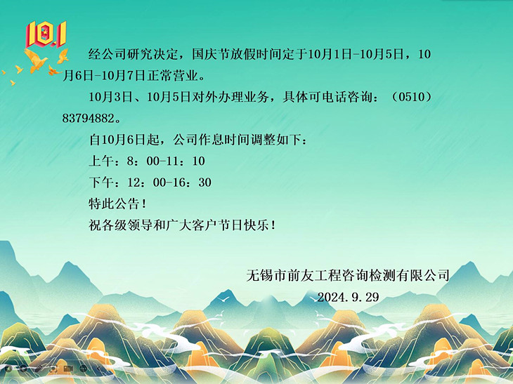 國慶節放假及節后營業時間調整的公告
