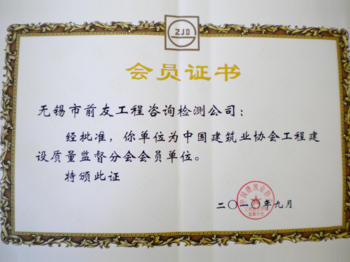 | 賀前友檢測公司吸收為中建協質量監督分會會員 | ||