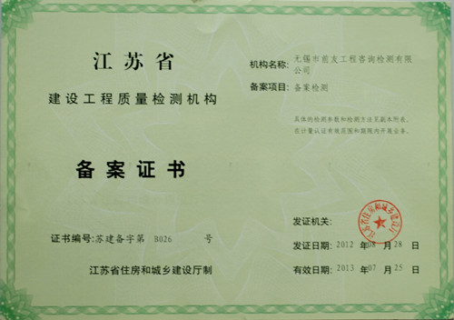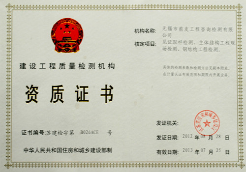 自公司申請資質(增擴項)后,先后通過市建設局組織的現場考核,省建設行政審批中心初審、復審,網上公示、公告,于8月28日,省住建廳批準并頒發了新的檢測資質證書。這次新增擴項包括:鋼結構工程檢測;建筑節能工程熱工性能現場檢測、中空玻璃露點檢測;建筑水電類開關、插座檢測。 經過六年多的辛勤耕耘,無錫市前友檢測公司在各級主管部門的領導和關心下,在廣大客戶的支持和配合下,在全體職工的不懈努力下,檢測能力逐步提高,至今,已具備了以下檢測資質能力項目: 見證取樣類:水泥物理力學性能;鋼筋(焊接連接)力學性能;砂、石常規;混凝土、砂漿強度;簡易土工;混凝土摻加劑(外加劑、粉煤灰);瀝青、瀝青混合料;預應力鋼絞線、錨夾具、金屬螺紋管。 專項檢測類:主體結構工程現場檢測(包括鋼筋保護層、現場強度檢測、結構性能、后置埋件力學檢測、建筑物沉降觀測);鋼結構工程檢測(包括鋼結構工程用鋼材、連接件、鋼結構焊縫質量、防腐防火涂層、鋼結構變形);建筑節能檢測(建筑節能材料檢測和建筑節能現場檢測)。 備案檢測類:室內環境檢測、建筑水電檢測、墻體、屋面材料、飾面材料、防水材料、門窗檢測。 其它類:相零線檢測、 截面尺寸檢測(現澆樓板厚度檢測)、室內空間尺寸檢測。
